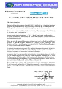 Notre Secrétaire Général National, Maître Abdoulaye Wade, vient d’apporter le soutien officiel du Parti Démocratique Sénégalais (PDS) à la Coalition Diomaye Président pour l’élection présidentielle du 24 mars. J’exprime ma profonde satisfaction pour cette décision éclairée.