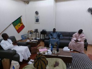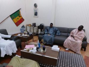 Le ministre de l’intérieur Mr A. Abdoulaye Félix Antoine Diome a reçu cet après midi Seriñ Amsatou Mbacke et une délégation du Dahira Khudamal Khadim pour discuter des problème de l’ heure et des mesures en vu d’instaurer une paix dans la responsabilité .