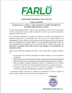 Touba : Visite du Ministre de l’eau, Le mouvement FARLU dénonce le show et propose des pistes de résolution du problème. (Communiqué)