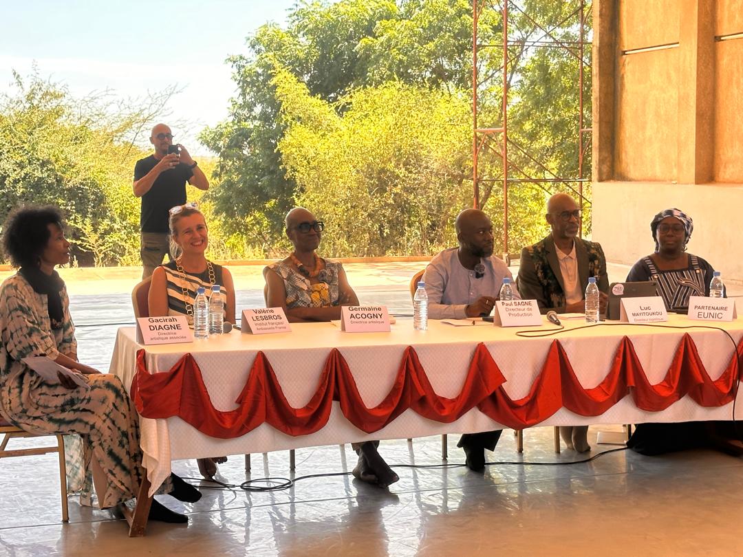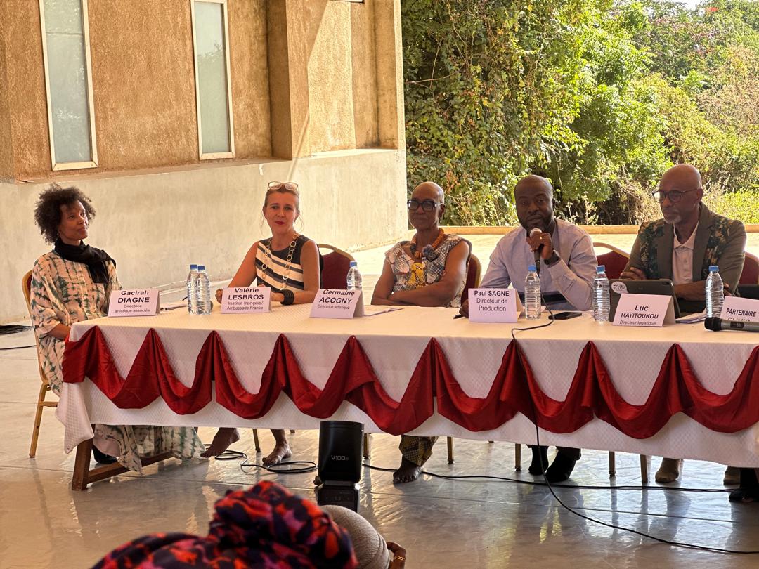 La conférence de presse a réuni plusieurs figures majeures du monde culturel et logistique, dont Paul Sagne, directeur de production, Luc Mayitoukou, directeur logistique, Germaine Acogny, ainsi que Mélanie Sadio Goudiaby, représentante du pôle des instituts culturels de l’Europe (EUNIC). Également présente, la directrice déléguée de l’Institut Français de Dakar a rappelé l’importance de soutenir les initiatives culturelles locales et de favoriser les échanges artistiques internationaux.